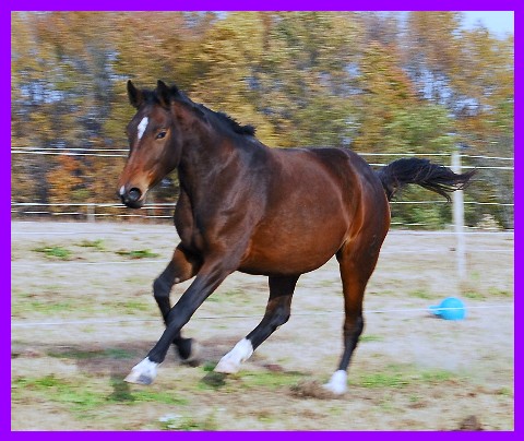 Fullalley (Feinbrand/Diamont/Pik Bube II) 2003 MSB/EE Hanoverian Mare This is Fullalley's first week at her new home at Haven Holsteiners and Hanoverians in Henderson, MD. |